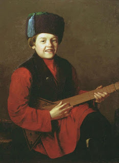 MUS. Instrument de musique russe, à cordes et constitué d'un long manche et d'une caisse triangulaire.